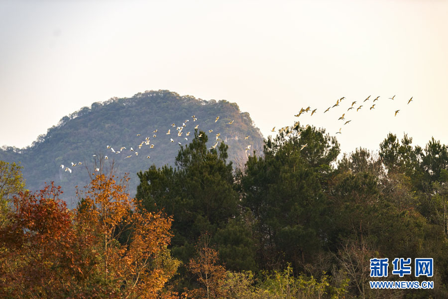 日前,在廣西百色市德保縣城關(guān)鎮(zhèn)西讀村那西屯的田野上,成群白鷺或在覓食嬉戲、或在空中飛舞、或在樹梢停歇,與青山、綠水、紅楓構(gòu)成一幅美麗的自然生態(tài)畫卷。