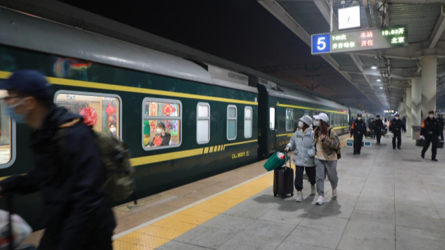 旅客進(jìn)站乘車(央廣網(wǎng)發(fā) 哈爾濱鐵路局供圖)