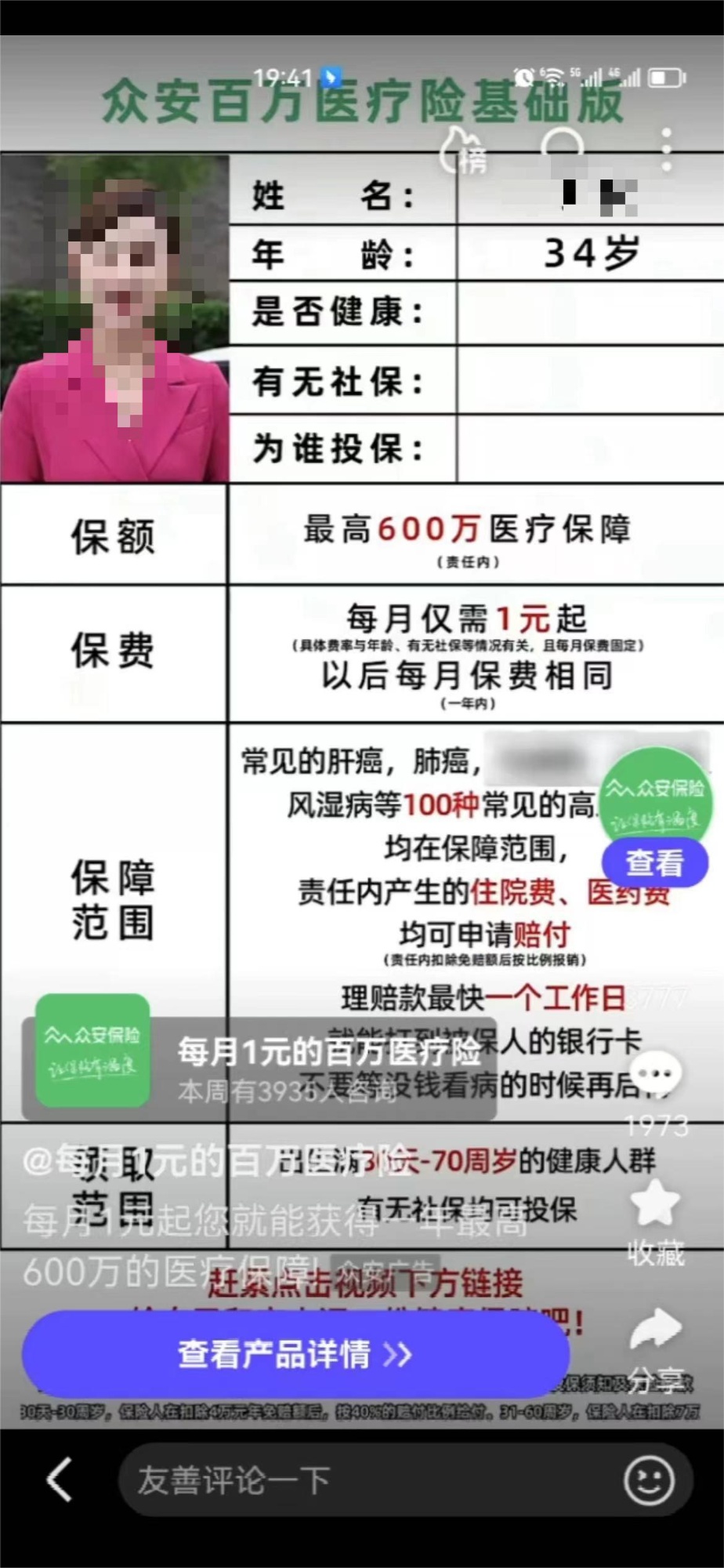 李濱表示,一般保險公司會將此類業(yè)務(wù)委托給技術(shù)公司和中介公司,比如保險代理公司或經(jīng)紀(jì)公司,它們通過社交平臺、短信等方式進(jìn)行推廣,完成線上的承保工作和保險銷售工作。在這個過程中,部分保險公司或銷售機(jī)構(gòu)還可能會涉嫌從社交平臺獲取消費者的身份信息。