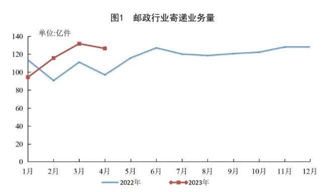 中新網(wǎng)5月22日電 據(jù)國家郵政局微信公眾號22日公布2023年4月郵政行業(yè)運行情況。1-4月,郵政行業(yè)寄遞業(yè)務量累計完成468.0億件,同比增長13.7%。其中,快遞業(yè)務量累計完成371.0億件,同比增長17.0%。
