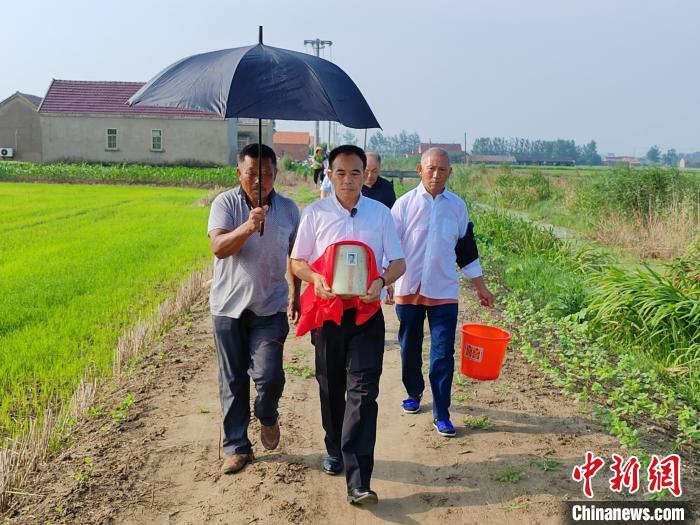 7月9日晨,劉德文手捧去臺(tái)老兵唐步良的骨灰,準(zhǔn)備將其安葬在江蘇鹽城市射陽(yáng)縣興橋鎮(zhèn)青華村青華公墓。這里是唐步良父母的長(zhǎng)眠之地?!≈行律缬浾?谷華 攝