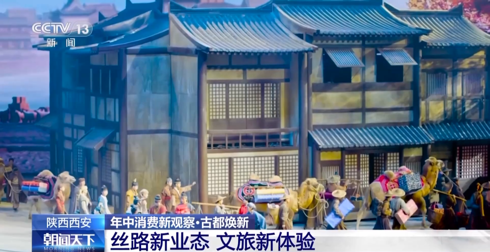 多元文化匯聚西安,帶來(lái)的不僅是進(jìn)口商品消費(fèi)的火熱,更有精神文化的滋養(yǎng)。臺(tái)上正在演繹的實(shí)景歌舞劇《駝鈴傳奇》,以盛唐為背景,講述了商貿(mào)駝隊(duì)勇敢開(kāi)拓絲路的故事。通過(guò)光影虛實(shí)依次呈現(xiàn),伴隨驚心動(dòng)魄的故事,讓觀眾大呼過(guò)癮。