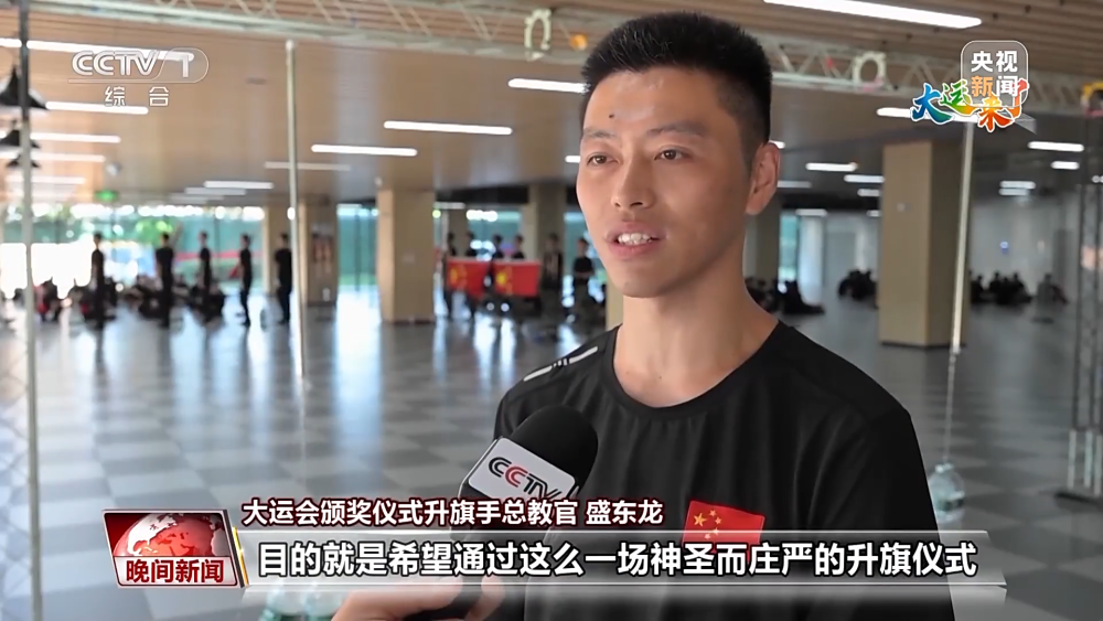 大運會頒獎儀式升旗手總教官 盛東龍:目的就是希望通過一場神圣而莊嚴的升旗儀式來感染他們,來激發(fā)和增強他們的愛國情懷和使命擔當。