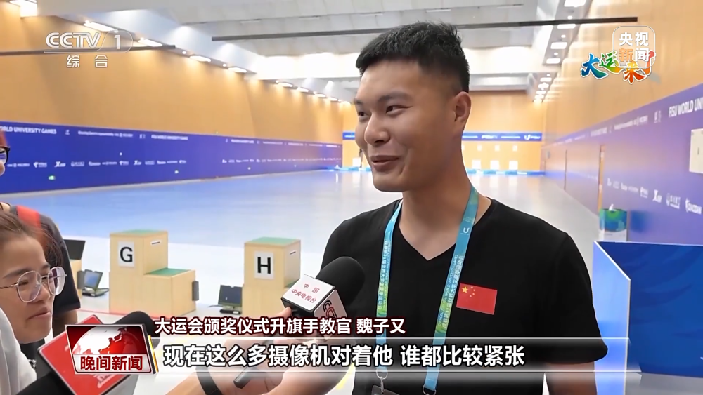 大運會頒獎儀式升旗手教官 魏子又:她們也都還是十幾歲的孩子,這么多攝像機對著她們,都比較緊張,還是需要經常面對鏡頭來成長自己。