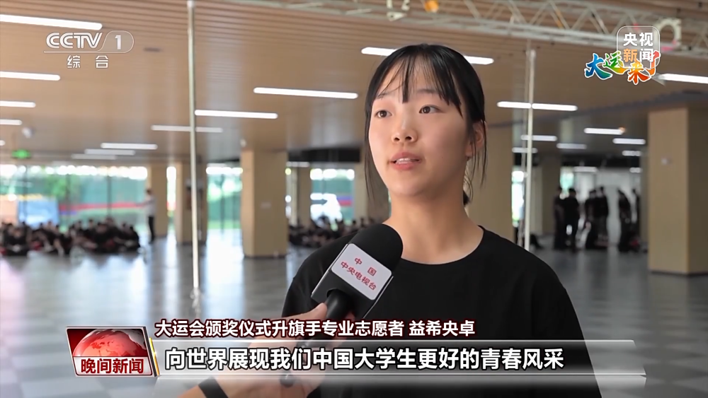大運會頒獎儀式升旗手專業(yè)志愿者 益希央卓:要心里有信念才能把這件事做好。向世界展現我們中國大學生更好的青春風采。