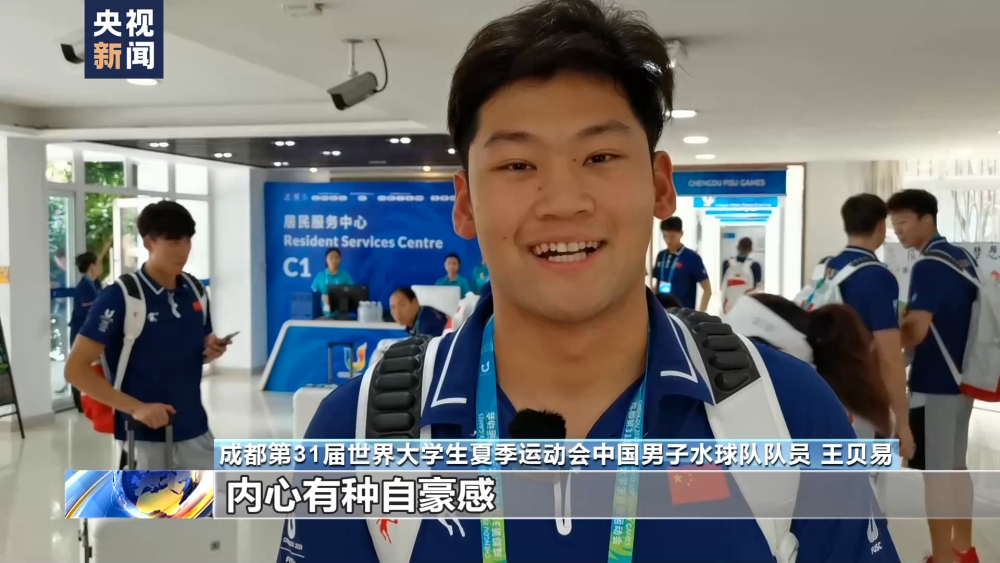 成都第31屆世界大學(xué)生夏季運(yùn)動(dòng)會(huì)中國(guó)男子水球隊(duì)隊(duì)員 王貝易:外面已經(jīng)看到我們中國(guó)隊(duì)的國(guó)旗了,內(nèi)心有種自豪感。
