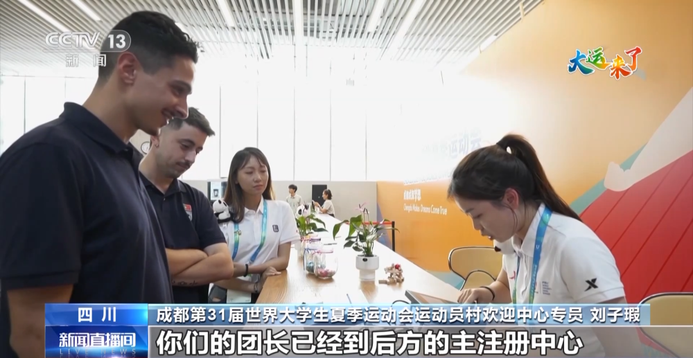 成都第31屆世界大學生夏季運動會運動員村歡迎中心專員 劉子瑕:你們的團長已經(jīng)到后方的主注冊中心為你們辦理身份注冊卡,之后你們便會拿到身份注冊卡就可以在大運村內通行。