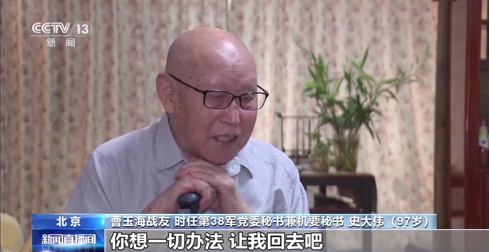 曹玉海戰(zhàn)友 時任第38軍黨委秘書兼機要秘書 史大偉:原來38軍的軍政委梁必業(yè)就說,別人的事都好辦,你這個事不好辦,因為你已經(jīng)轉業(yè)了。曹玉海當時非常懇切,老首長,我是在114師342團長大的,你想一切辦法,讓我回去吧。