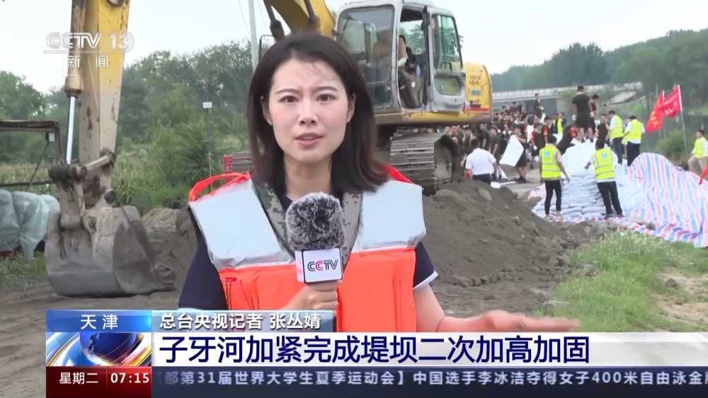 總臺央視記者 張叢婧:可以看到,現(xiàn)場的500多名搶險救援人員正在對這段大堤進行持續(xù)加高加固作業(yè)。筑牢防洪堤壩,保障洪水繞城而走,安全有序入海。