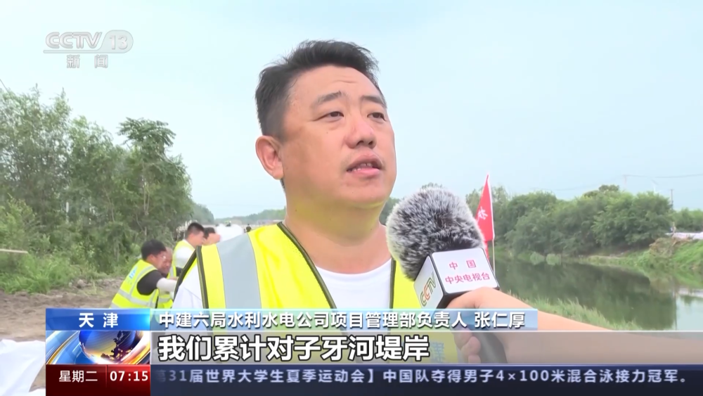 中建六局水利水電公司項目管理部負責(zé)人 張仁厚:我們累計對子牙河堤岸進行7.9公里的加高加固。接到緊急施工任務(wù)以后,我們迅速抽調(diào)人員、設(shè)備,將子牙河左岸堤壩由7米加高到8米,此項工作一到兩天內(nèi)施工完成。
