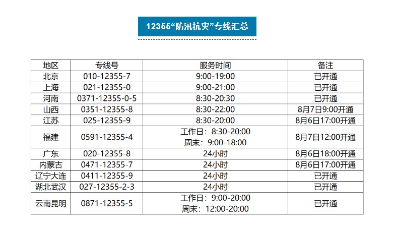 12355“防汛抗災(zāi)”專(zhuān)線(xiàn)匯總