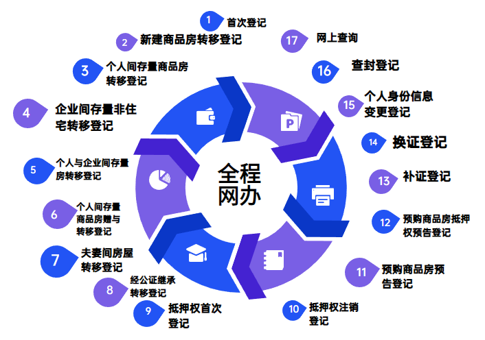 ?。?7項常見登記業(yè)務的“全程網辦”示意圖,圖源:北京市規(guī)劃和自然資源委員會微信公眾號,央廣網發(fā))