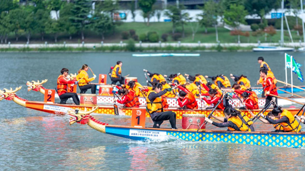 據(jù)了解,早在2021年,南京市體育集團(tuán)與江寧開發(fā)區(qū)共同打造的國家級水上運(yùn)動項目——帆船訓(xùn)練基地落戶九龍湖國際企業(yè)總部園。今年端午節(jié)當(dāng)天,第二十屆南京市外商投資企業(yè)龍舟邀請賽在江寧百家湖拉開戰(zhàn)幕,在寧外企揚(yáng)子巴斯夫、菲尼克斯電氣、西門子數(shù)控、舍弗勒等16支參賽隊伍激情揮槳、奮勇爭先。