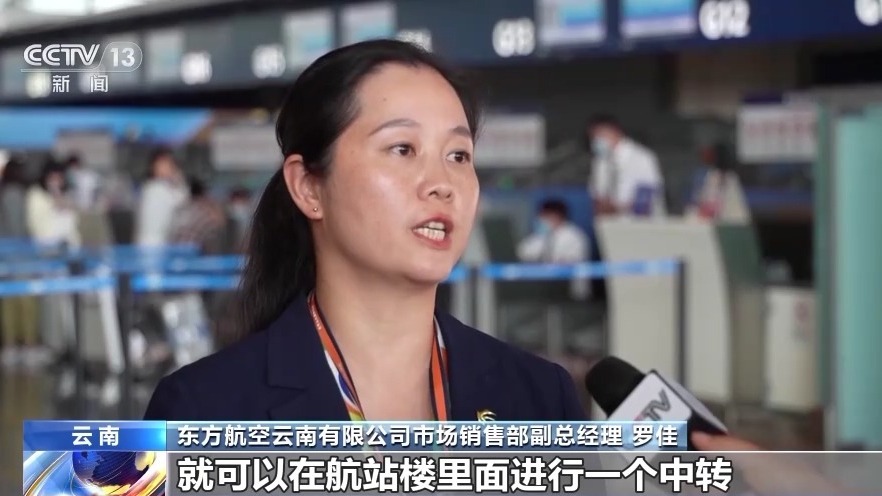 東方航空云南有限公司市場(chǎng)銷售部副總經(jīng)理 羅佳:旅客不需要出隔離區(qū),就可以在航站樓里面進(jìn)行中轉(zhuǎn),并且行李直掛,行李從始發(fā)站開(kāi)始不用二次提取。