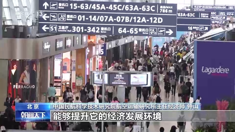 中國(guó)民航科學(xué)技術(shù)研究院航空運(yùn)輸研究所主任經(jīng)濟(jì)師 鐘山:通過(guò)我們這種“干支通、全網(wǎng)聯(lián)”以及通程航班的模式,能夠讓我們?nèi)?、四線城市的旅客,融到整個(gè)國(guó)家的經(jīng)濟(jì)社會(huì)建設(shè)中,能夠提升它的經(jīng)濟(jì)發(fā)展環(huán)境。特別是從統(tǒng)一大市場(chǎng)的開(kāi)放角度來(lái)看,這個(gè)是最終能夠促進(jìn)我們國(guó)內(nèi)市場(chǎng)的銜接。