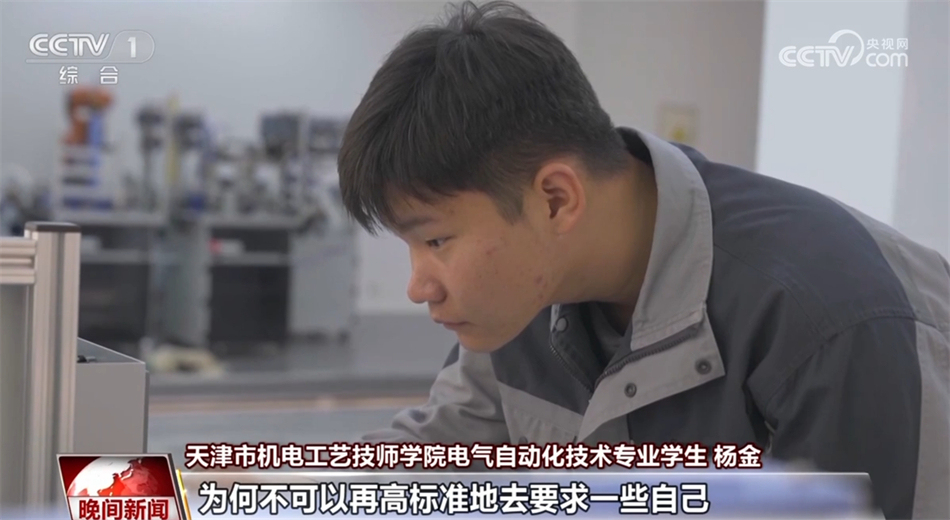 天津市機電工藝技師學(xué)院電氣自動化技術(shù)專業(yè)學(xué)生 楊金:讓每一顆螺絲、每一個部件都能發(fā)揮出它最大的作用,這就是我的需要和目標(biāo)了。(未來希望)自主去研發(fā)需要使用的機器,可以去創(chuàng)造(更多)屬于咱們(國人)自己的(電氣化)產(chǎn)品。
