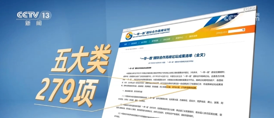 第一屆“一帶一路”國際合作高峰論壇誕生的首張成果清單,涵蓋了五大類的279項(xiàng)具體成果。政策溝通、設(shè)施聯(lián)通、貿(mào)易暢通、資金融通、民心相通成為各國合作的重點(diǎn)。