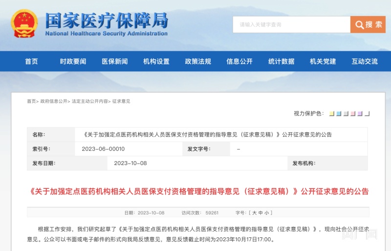 根據(jù)國家醫(yī)保局發(fā)布的公告,征求意見反饋截止時間為2023年10月17日17:00。