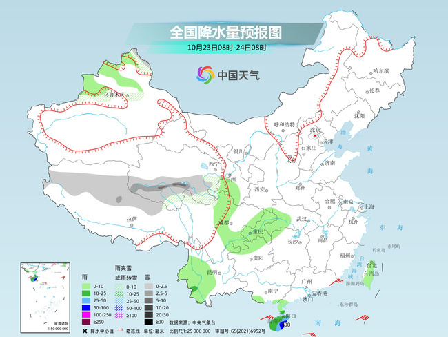 中央氣象臺預(yù)計,今天,受“三巴”殘余環(huán)流和冷空氣持續(xù)影響,華南局地仍有強風(fēng)雨天氣,其他大部地區(qū)將以晴或多云為主。具體來看,新疆北疆北部、西藏東部和北部、青海南部等地部分地區(qū)有小到中雪或雨夾雪。廣西東南部、雷州半島、海南島等地有中到大雨,其中,海南島東部等地部分地區(qū)有暴雨或大暴雨(100~180毫米)。