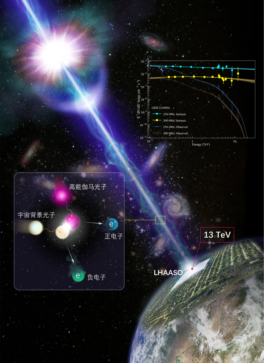 穿越24億光年!“拉索”精確測量迄今最亮伽馬射線暴高能輻射能譜