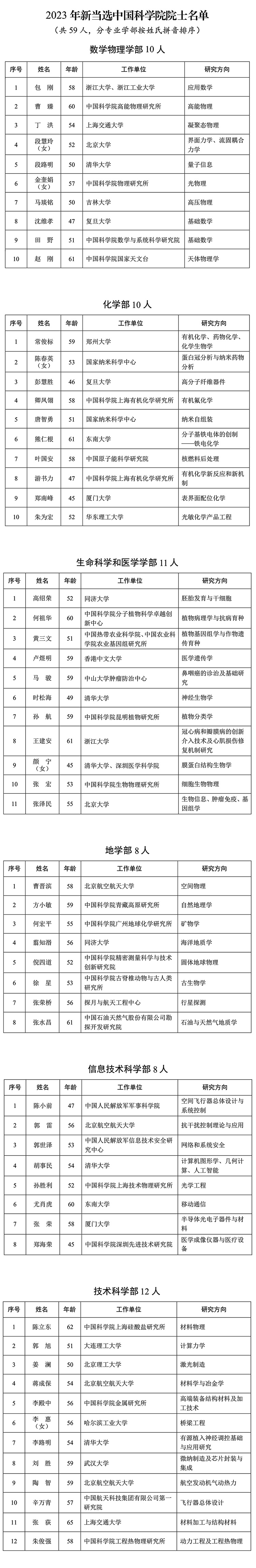 2023年新當(dāng)選中國科學(xué)院院士名單
