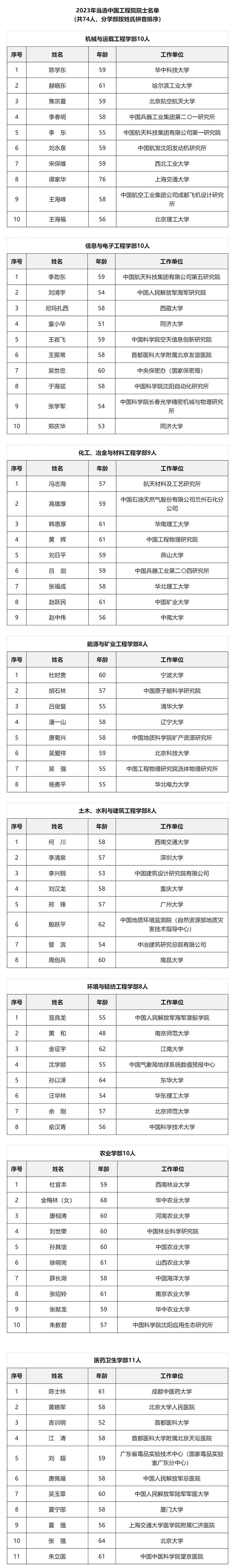 央廣網(wǎng)北京11月23日消息(記者 郭彥偉)11月22日,中國科學(xué)院、中國工程院公布2023年院士增選結(jié)果。2023年中國科學(xué)院選舉產(chǎn)生了59名中國科學(xué)院院士,中國工程院2023年院士增選共選舉產(chǎn)生74位中國工程院院士。