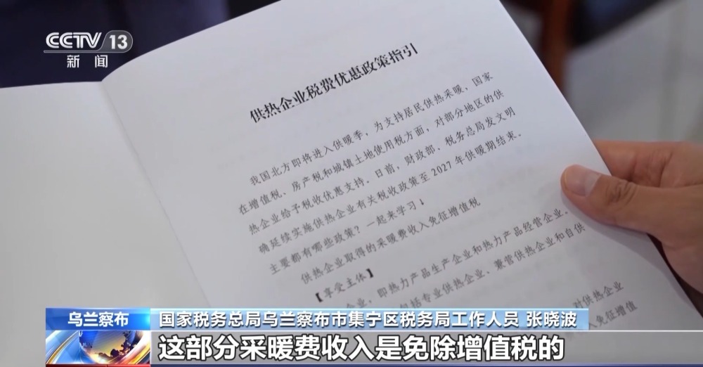 國家稅務總局烏蘭察布市集寧區(qū)稅務局工作人員 張曉波:向居民供熱取得的這部分采暖費收入是免除增值稅的,為了支持企業(yè)發(fā)展,也免除“房土”兩稅。