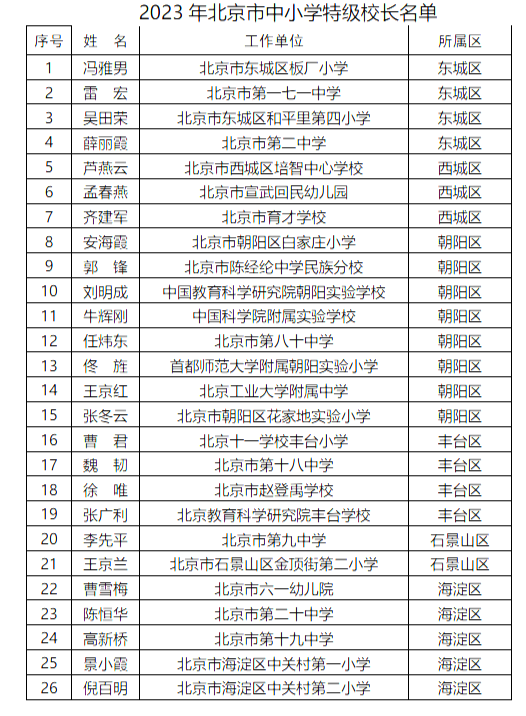 北京市第三批中小學(xué)特級校長名單(圖源:北京市教委官方網(wǎng)站)