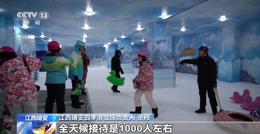 江西靖安四季滑雪場(chǎng)負(fù)責(zé)人 余丹:我們(滑雪場(chǎng))占地面積5000平方米,擁有滑雪區(qū)、娛雪區(qū),單場(chǎng)可以接待人次是200個(gè)人左右,全天候接待是1000人左右。