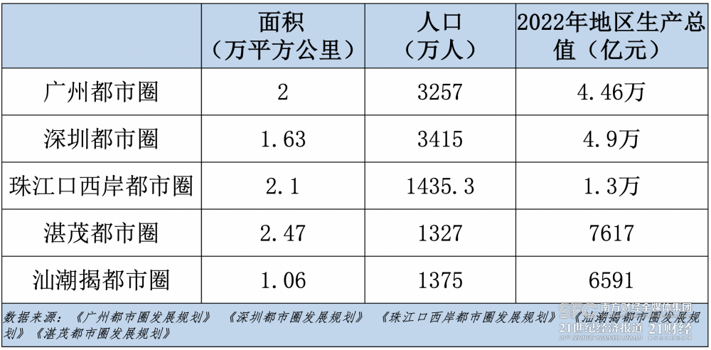 “都市圈是開放的‘圈’,是市場聯(lián)系和社會分工更密集的概念?!标慀櫽钕蛴浾弑硎荆际腥Φ奶岢鍪菫榱藚f(xié)調(diào)城鄉(xiāng)發(fā)展,通過動態(tài)調(diào)整規(guī)劃不斷增強(qiáng)都市圈新內(nèi)涵,將釋放廣東省區(qū)域經(jīng)濟(jì)發(fā)展的新質(zhì)生產(chǎn)力。據(jù)公開數(shù)據(jù)顯示,2022年,廣州都市圈地區(qū)生產(chǎn)總值4.46萬億元,深圳都市圈4.9萬億元,珠江口西岸都市圈1.3萬億元,汕潮揭都市圈7617億元,湛茂都市圈6591億元,合計12.08萬億元。