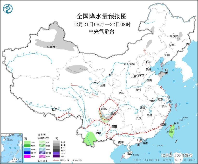 圖3 全國降水量預報圖(12月21日08時-22日08時)