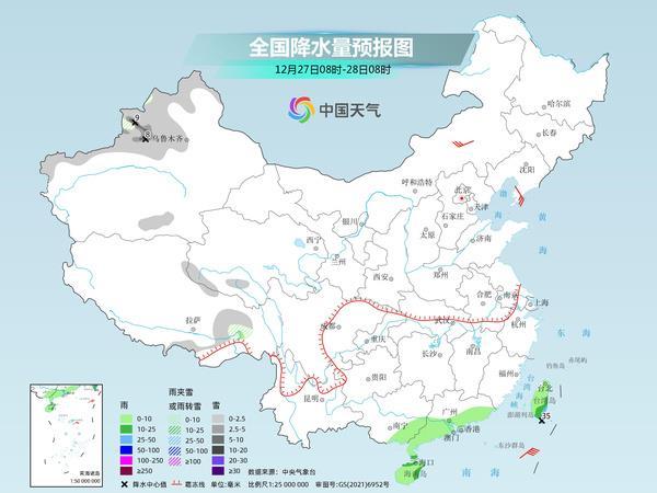 后天,新疆北部和南疆西部山區(qū)、西藏東部等地部分地區(qū)有小到中雪或雨夾雪,其中,新疆伊犁河谷等地部分地區(qū)有大雪。華南南部、海南島、臺灣島等地部分地區(qū)有小到中雨,局地有大雨。