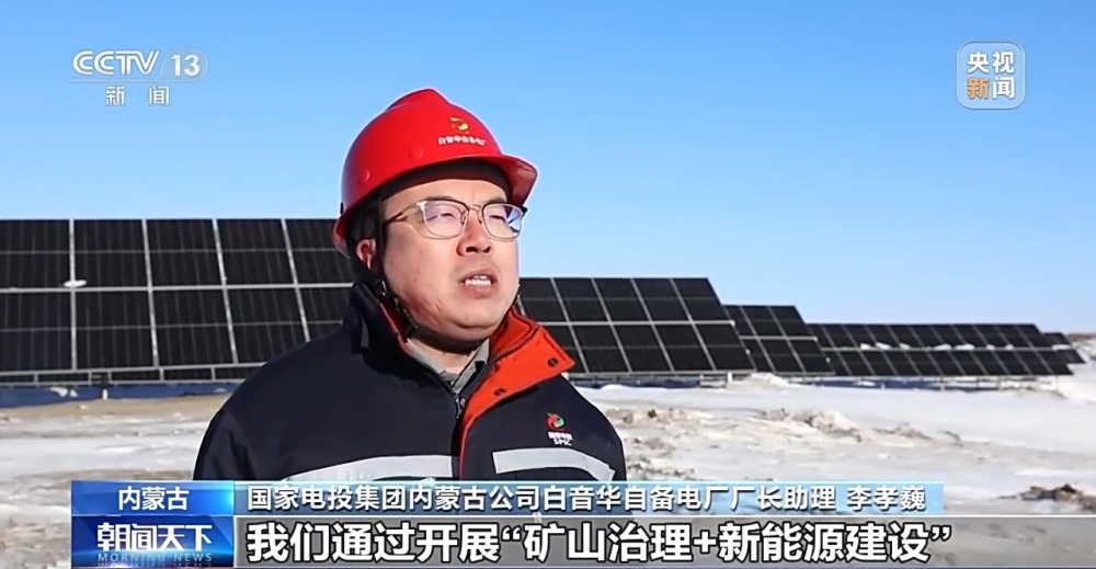 國家電投集團內蒙古公司白音華自備電廠負責人 沈洪發(fā):在排土場上安裝光伏板,不僅可使地表蒸發(fā)水量降低20%至30%,而且還能有效降低風速,很好地改善了植物的生存環(huán)境,地表生態(tài)恢復效果顯著。