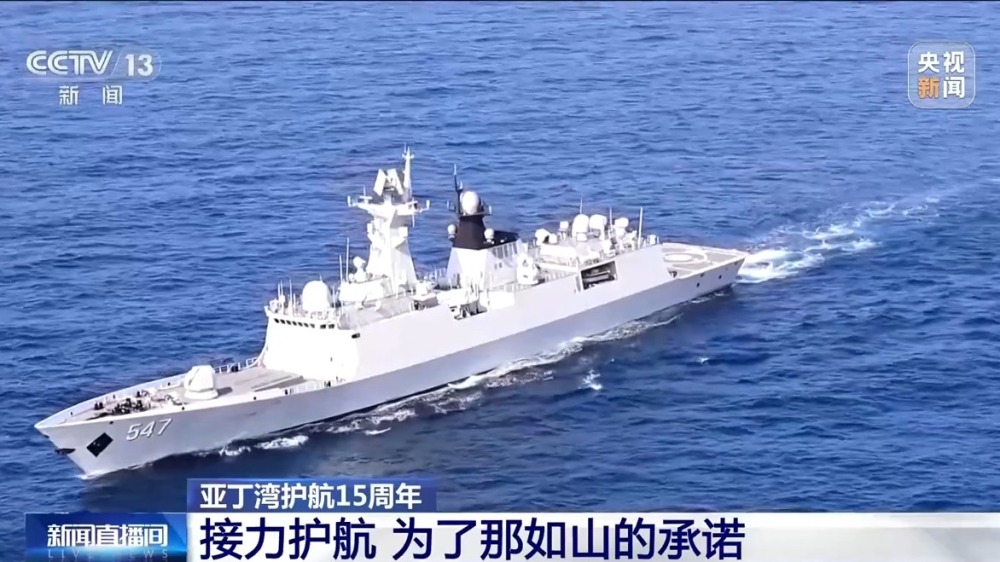 海軍臨沂艦 閆鵬:15年間,中國海軍先后為7200余艘中外船舶實施護航,其中外國船舶占比超過50%,甚至不少外籍商船是從國際推薦走廊駛來,申請加入中國海軍護航隊伍。