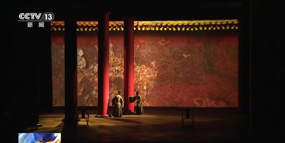 舞臺(tái)上,靈感來自故宮大殿的八根紅色立柱構(gòu)建起整個(gè)表演空間,配合多媒體的數(shù)字影像,營(yíng)造出極具東方審美意境的戲劇空間。兼具厚重與靈動(dòng),讓歷史劇更具當(dāng)代審美。