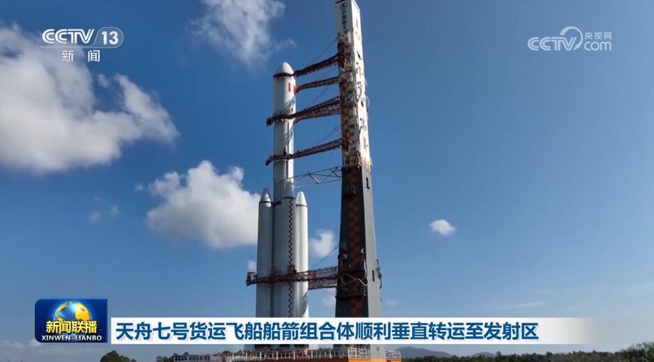 天舟七號貨運飛船船箭組合體順利垂直轉(zhuǎn)運至發(fā)射區(qū)