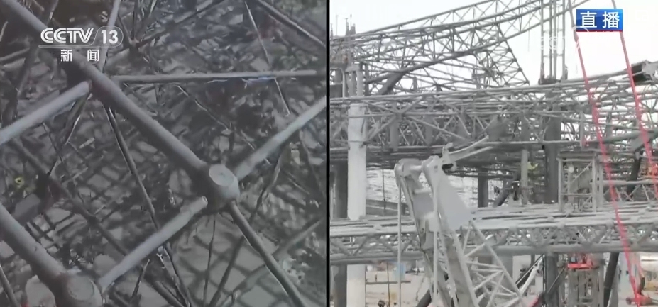 總臺記者 韓志濤:隨著最后一榀鋼梁順利吊裝到位,機(jī)場主航站樓鋼結(jié)構(gòu)合攏。航站樓的設(shè)計靈感來源于閩南傳統(tǒng)大厝,遠(yuǎn)看就像一只展翅飛翔的白鷺。白鷺身體部分就是主航站樓,像一個大屋蓋,總面積相當(dāng)于18個標(biāo)準(zhǔn)足球場,總用鋼量達(dá)到1.1萬噸,重量相當(dāng)于181節(jié)火車車廂。想把這些鋼梁安全架上去,誤差要控制在毫米級,可以說難度非常大,究竟是怎么完成的?建設(shè)者們想了一個巧妙的辦法,像拼搭積木一樣把屋蓋分為三個部分,先在樓面的原位進(jìn)行拼接,然后是分區(qū)域用液壓設(shè)備同步提升,最后在空中轉(zhuǎn)體調(diào)整角度。施工人員介紹,作業(yè)中最大單個提升區(qū)面積達(dá)3萬多平方米,提升重量有2600多噸,由數(shù)萬個構(gòu)件拼接而成。完成后同步啟動60多個液壓提升點(diǎn)向上整體提升1米,懸空后通過空中旋轉(zhuǎn)7度,調(diào)節(jié)到設(shè)計姿態(tài),最后提升到31米后精準(zhǔn)安裝。