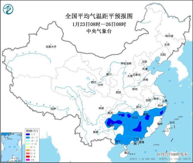 中央氣象臺(tái)1月23日06時(shí)繼續(xù)發(fā)布低溫藍(lán)色預(yù)警:預(yù)計(jì),1月23日至25日,貴州、湖南、江西、浙江中南部、福建西部、廣東、廣西中東部等地最低氣溫或平均氣溫較歷史同期偏低5℃以上,其中,貴州中東部、湖南西北部、江西中南部、浙江南部、廣東西北部等地的部分地區(qū)偏低7℃以上,最低氣溫0℃線將位于廣西北部、廣東北部一帶 。