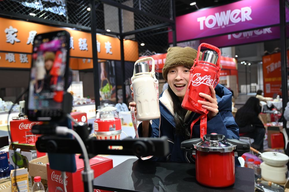 2023年12月21日,浙江省永康市一家保溫杯企業(yè)電商部門的工作人員通過直播推介保溫杯產(chǎn)品。新華社記者 韓傳號(hào) 攝