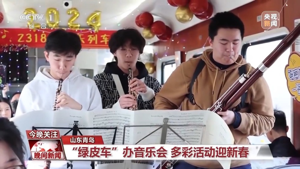 隨著春節(jié)臨近,在外務(wù)工的游子們紛紛踏上了回家的旅途。為了給這些辛苦一年的務(wù)工人員帶去歡樂,在青島北開往成都西Z318次列車上,悅耳的歡快旋律響起。列車工作人員邀請三位學(xué)生旅客,為大家演奏了悠揚(yáng)歡快的樂曲。