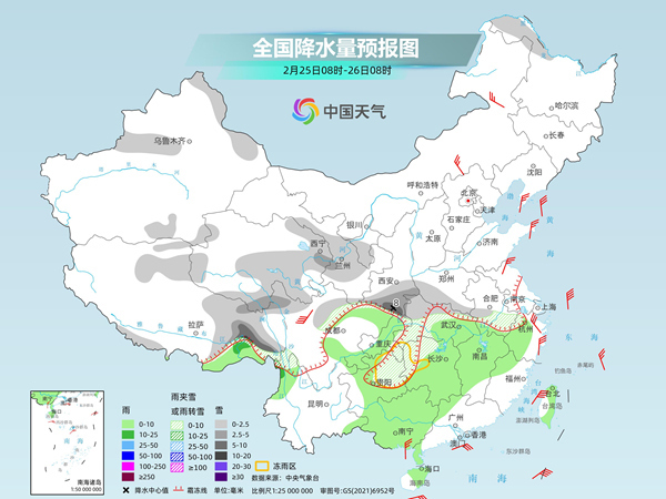 昨天,我國雨雪范圍仍然較大,雨雪強(qiáng)度有所減弱,監(jiān)測顯示,湖北、湖南、安徽和江蘇等地出現(xiàn)雨雪冰凍天氣,青海東部、安徽中部、江蘇西部、湖北東部等地部分地區(qū)出現(xiàn)中到大雪,湖北荊州、咸寧、武漢、黃石和安徽安慶等地暴雪。湖北東南部、安徽南部、江蘇西南部、江西西北部、湖南東北部及西藏東南部、云南西北部等地部分地區(qū)出現(xiàn)雨夾雪5~15毫米,江西南昌局地26毫米。貴州中東部、湖南中南部、湖北東部、安徽中西部等地出現(xiàn)凍雨。江西中北部、浙江南部、福建西北部等地出現(xiàn)中到大雨,江西鷹潭和上饒,浙江麗水、衢州和臺州,福建南平等局地暴雨,江西上饒局地100~149毫米。