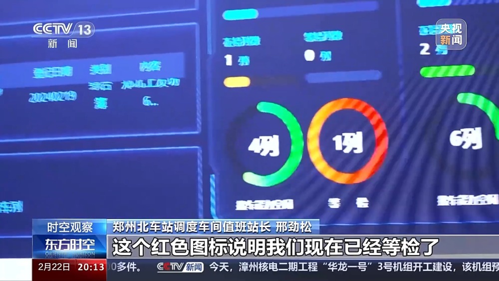 鄭州北車站調(diào)度車間值班站長(zhǎng) 邢勁松:三種圖標(biāo),你看黃色圖標(biāo)說明我們檢車能力不太緊張,然后綠色圖標(biāo)說明我們接車能力空閑,紅色圖標(biāo)說明我們現(xiàn)在已經(jīng)等檢了。今天我們白班基本上開了三列化肥煤車,通過大數(shù)據(jù)服務(wù)我們的春耕生產(chǎn)。