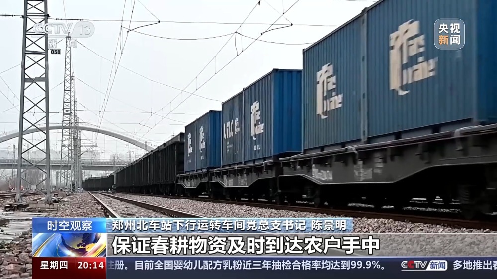 總臺(tái)央視記者 蔣樹林:這里是鄭州北車站,也是全國(guó)作業(yè)量最大的編組站,大家看我眼前這個(gè)車?yán)锩嫜b的就是當(dāng)下春耕所急需用的化肥原料,作業(yè)還在加班加點(diǎn)地往前推進(jìn)。