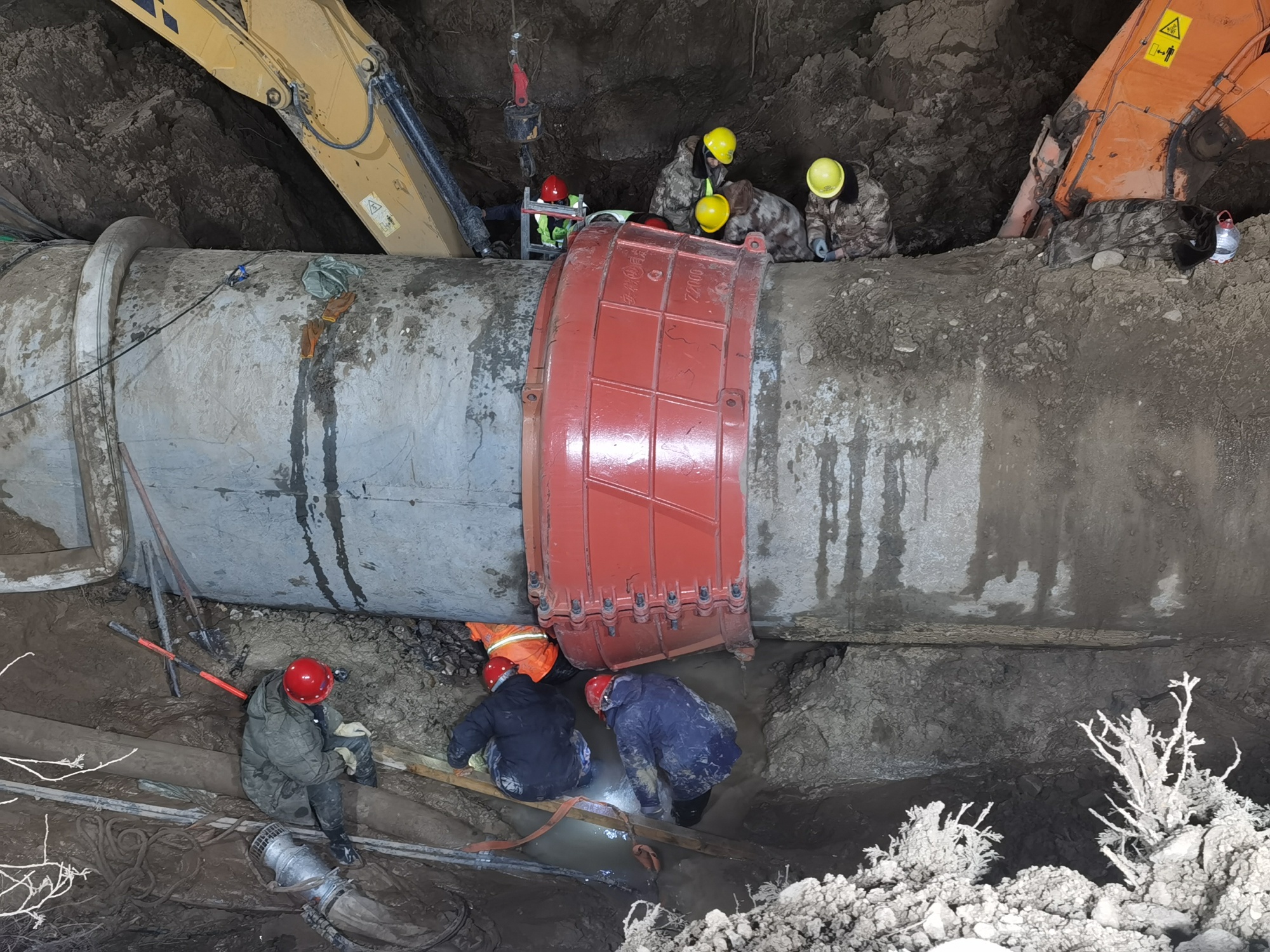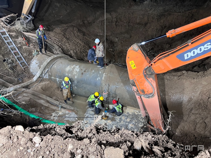 張文偉說:“因為這個管道是個兩米直徑的供水管線,是個主管線,它破裂以后水量特別大。管線是在耕地上,維修車輛是進不去的。維修首先得修筑施工通道,所有車輛人員靠近不了,然后關閘停水,走施工通道過去以后,進行原有管道抽排,管道里都是滿水,必須把水排干凈才能搶修,才能發(fā)現(xiàn)它是哪兒壞了,我們采取哪種方式來進行搶修。搶修方案有很多種,我們也提前都有預案。所以抽水時間很長,上游就有7萬多立方的水,抽排就是一個很大的難點。”