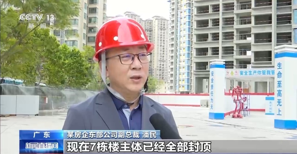 某房企東部公司副總裁 潘民:現(xiàn)在7棟樓主體已經(jīng)全部封頂,正在進(jìn)行批量精裝修階段,我們都是按照計劃實施,按合同按合約交付,第一批次是在2025年的8月份交付。