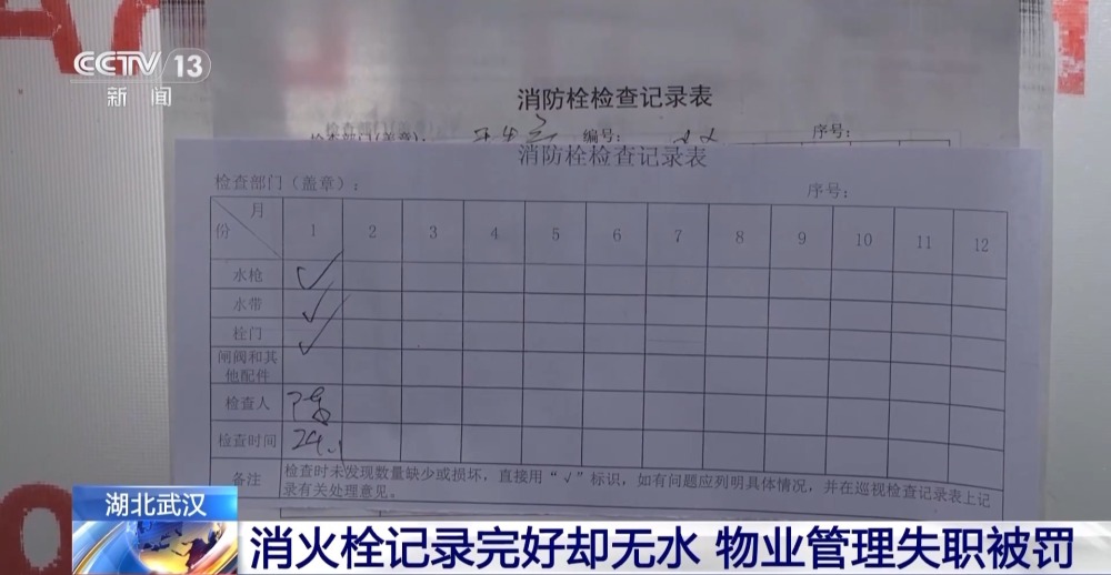 消火栓記錄完好卻無水 物業(yè)管理失職被罰