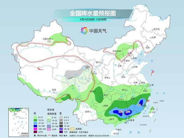 具體來看,中央氣象臺預(yù)計(jì),今天,內(nèi)蒙古東北部、黑龍江中東部和西南部、新疆北疆北部和南疆西部山區(qū)、西藏北部、青海南部和西部、川西高原北部等地部分地區(qū)有小雪或雨夾雪。西藏東南部、江南大部、西南地區(qū)東部、華南北部等地部分地區(qū)有中到大雨,其中,江西南部、福建西北部、廣西東北部、廣東西北部等地部分地區(qū)有暴雨或大暴雨(100~120毫米)。