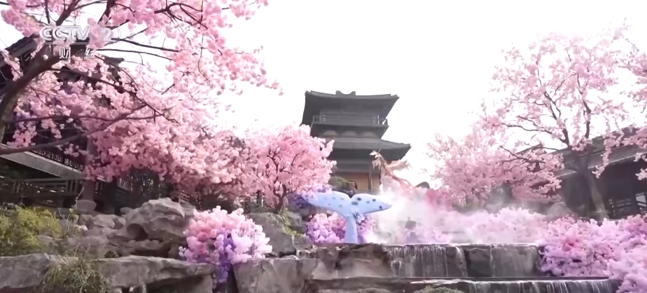 除了賞花外,江蘇常州的東方鹽湖城推出山海主題花境,花瀑、花墻、花廊等布景隨處可見,配上故事感的“打卡”裝置以及山海主題人物實景走秀互動,將游客拉入山海奇幻神話世界。
