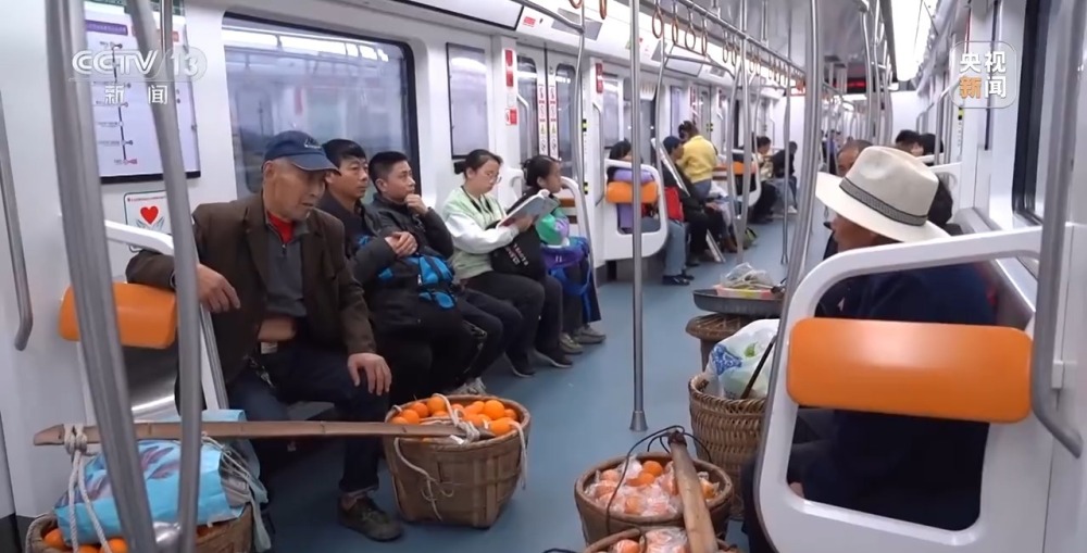 地鐵線沒通時,他們都會前往石船鎮(zhèn)和附近的場鎮(zhèn)去賣橙子,那時,老兩口便會挑著橙子走上1個多小時,行程8里地,才能到鎮(zhèn)上,但鎮(zhèn)上賣得并不好,果子時長會因為賣不出去而爛在地里。今年一月開始,商戶上門收購,外加上每天乘地鐵去賣橙子,老兩口的橙子已經(jīng)銷售了8000多斤,剩下還有2000斤左右。有地鐵的便利加持,老兩口并不擔心爛在地里這件事兒,只盼著行情好些,能夠多賺些。