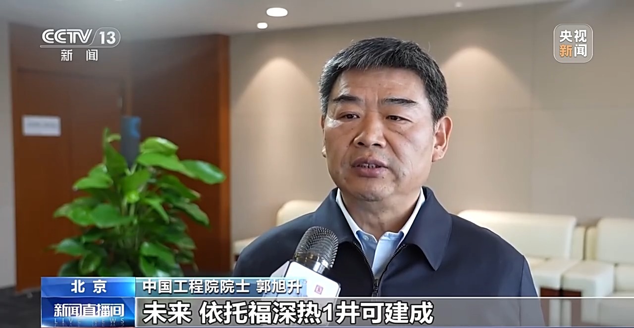 中國工程院院士 郭旭升:我國淺層和中深層地熱資源直接利用,已經(jīng)形成了比較完整的技術(shù)體系,但是還有很多發(fā)展空間,包括像福深熱1井的深部干熱巖,資源量大溫度高,它在供暖制冷等方面,我覺得前景非常好。